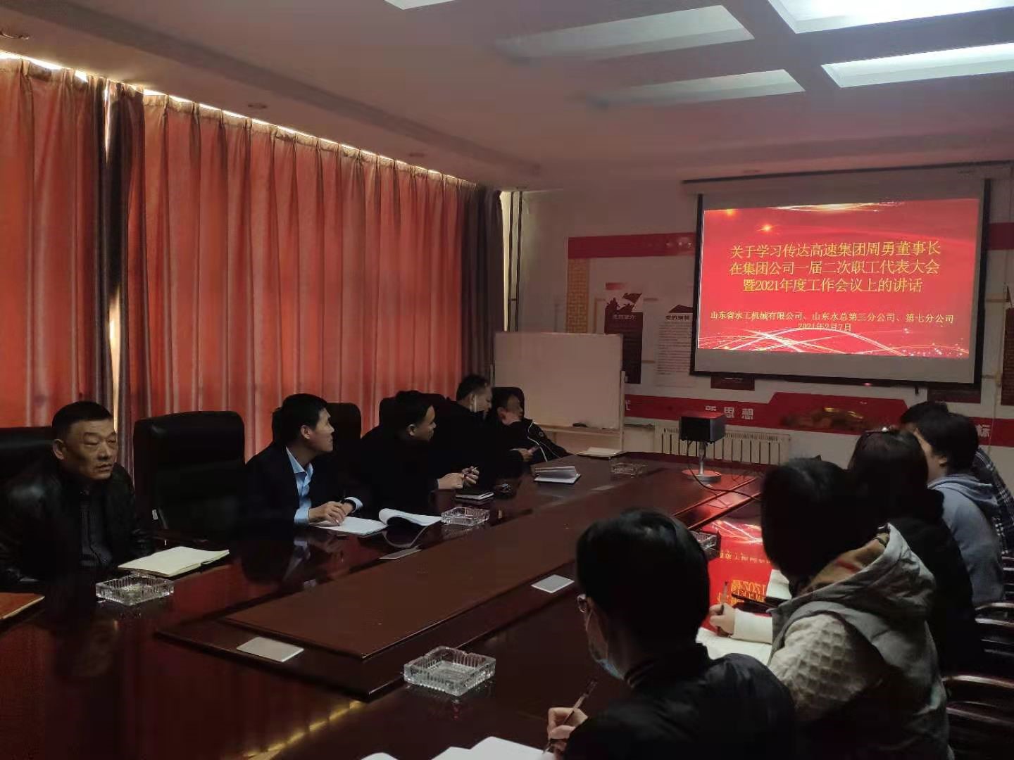 山东省水工机械有限新利·体育·(中国)中国有限公司官网、山东水总第三分新利·体育·(中国)中国有限公司官网、第七分新利·体育·(中国)中国有限公司官网传达学习集团党委书记、董事长周勇同志在2021年度工作会议上的讲话