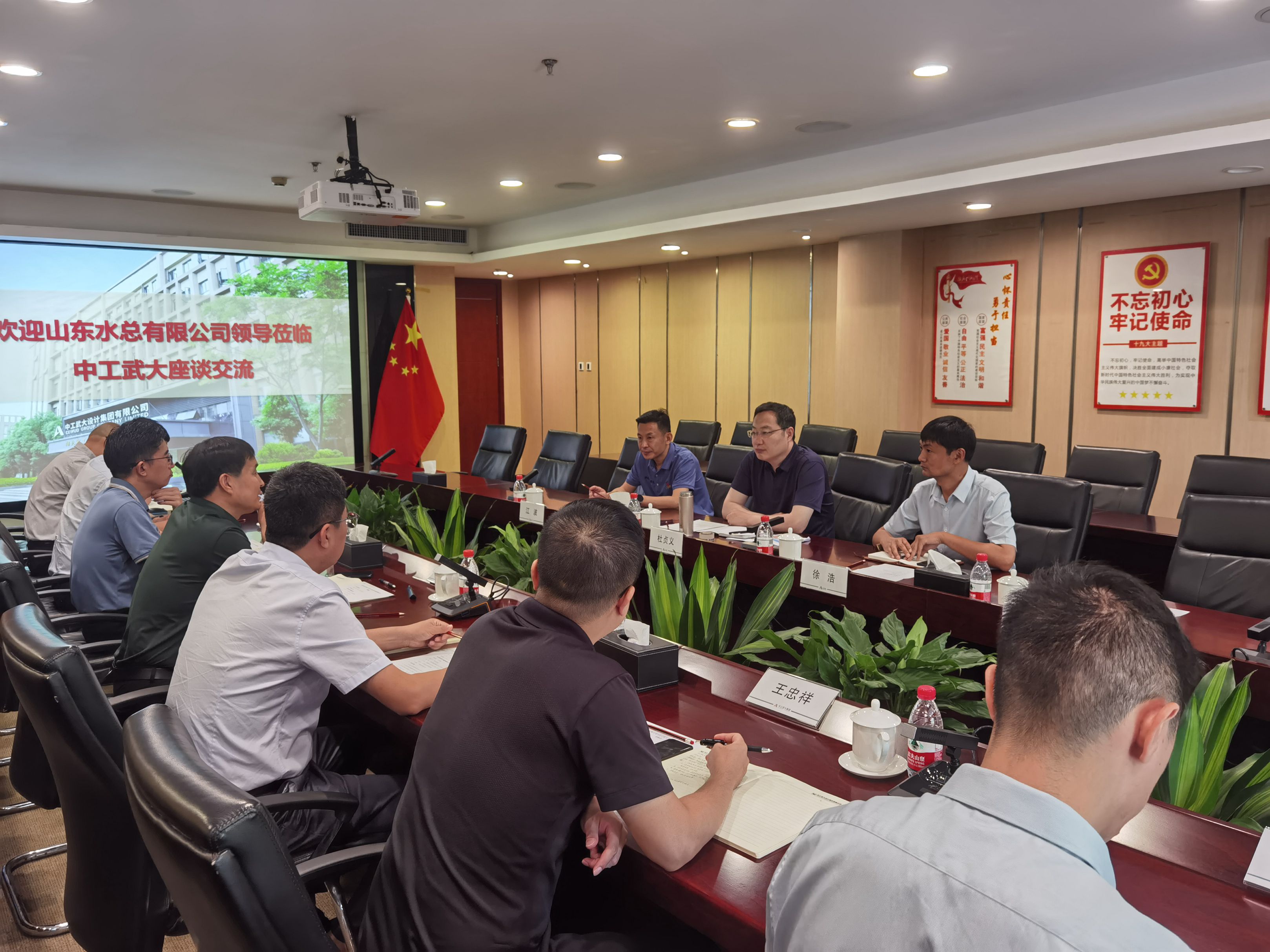 杜贞义一行先行到山东高速湖北发展有限新利·体育·(中国)中国有限公司官网开展调研,与湖北发展新利·体育·(中国)中国有限公司官网党委书记、董事长隋进浩,党委副书记、董事、总经理陈传刚,党委副书记、董事、工会主席乔孟强等相关领导座谈交流。交流会上,双方就下步湖北水利市场前景发展方向以及新利·体育·(中国)中国有限公司官网经营策论,进行深入探讨交流。