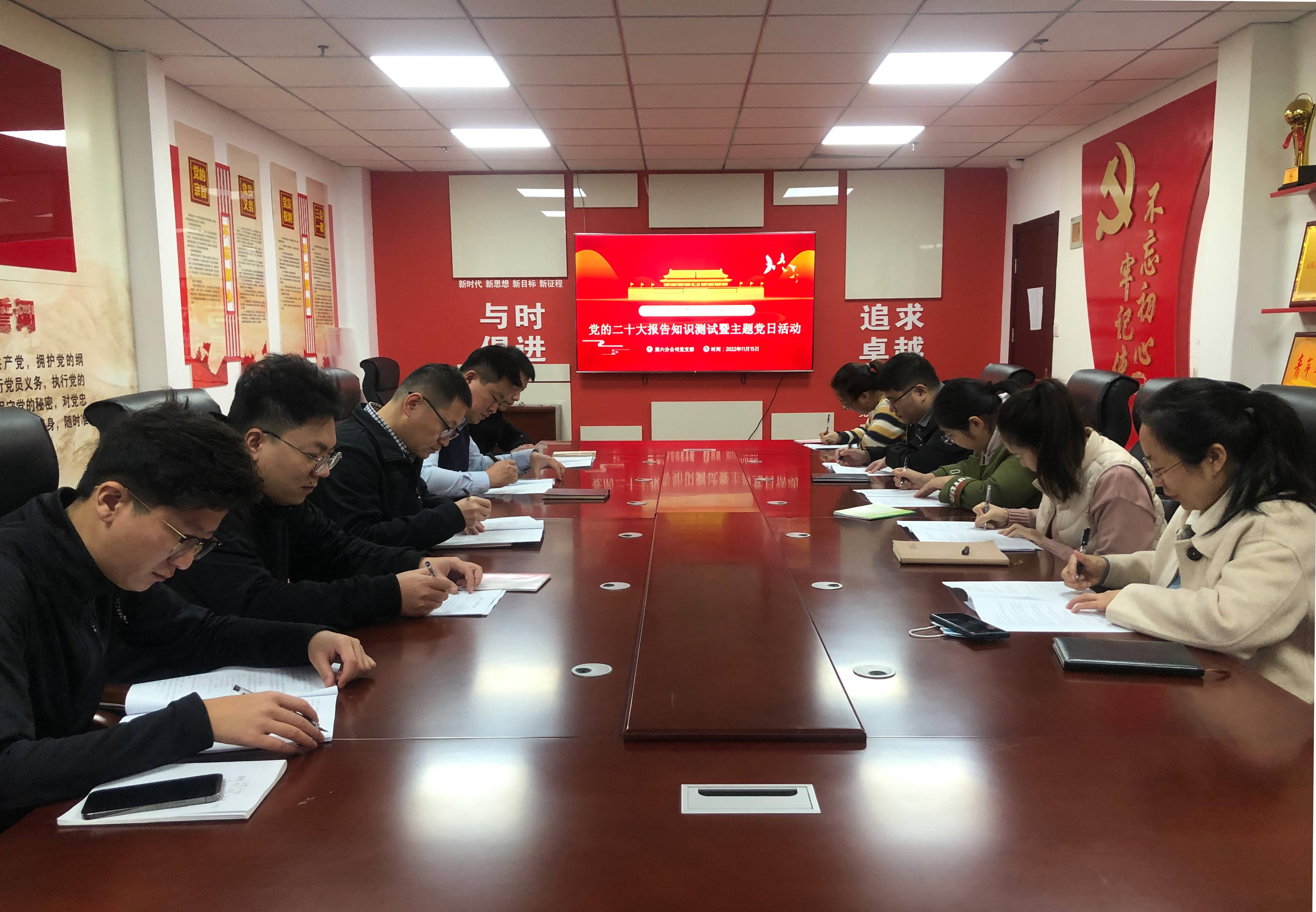 为深入学习贯彻党的二十大精神,推动第六分新利·体育·(中国)中国有限公司官网党员干部职工深刻领会二十大精神实质,11月15日,第六分新利·体育·(中国)中国有限公司官网党支部组织开展党的二十大报告知识测试暨主题党日活动。