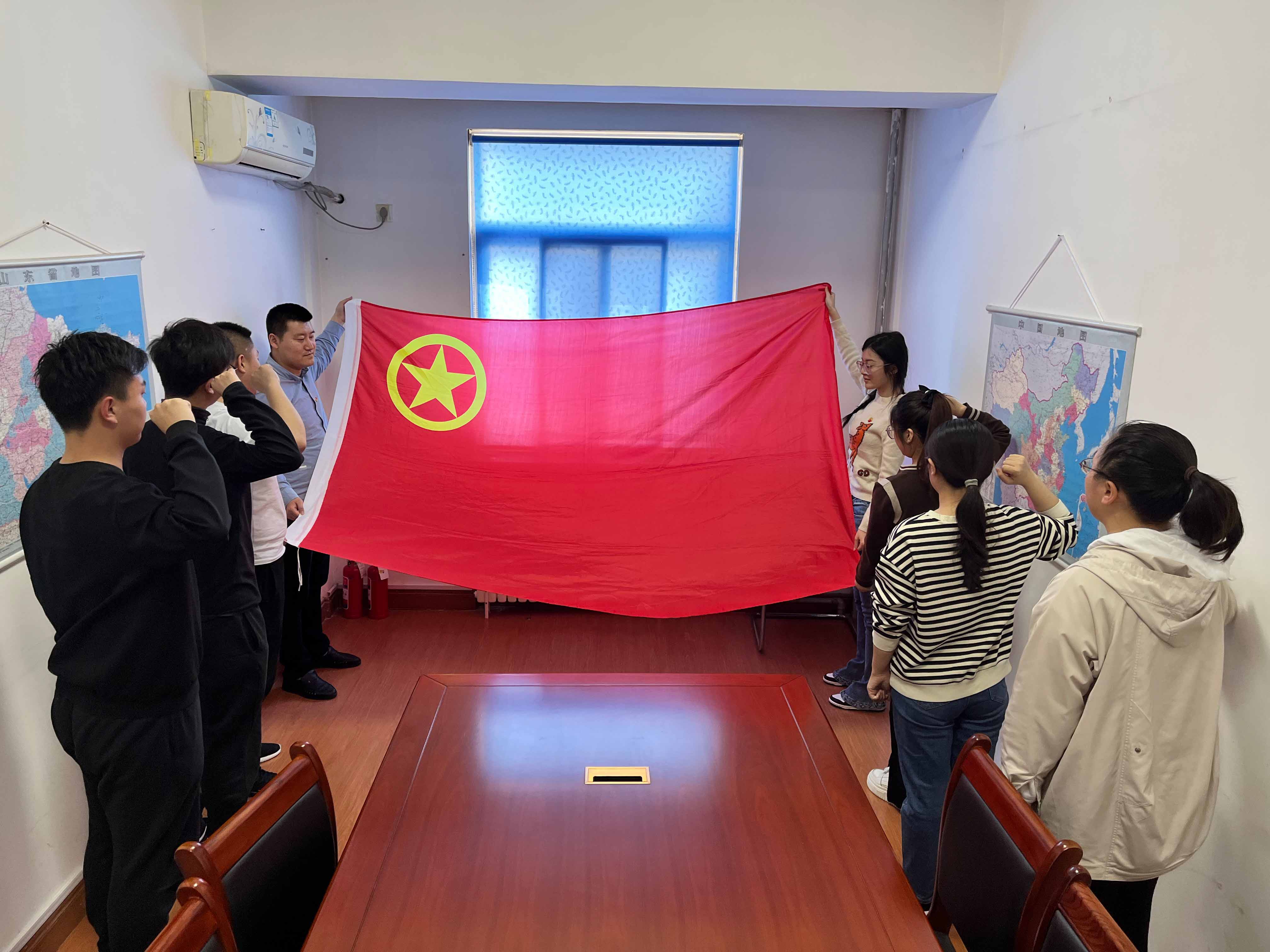 为检验青年理论学习小组学习成果,团青们围绕“持续学习二十大精神”“深入学习贯彻习近平新时代中国特色社会主义思想主题教育”等方面展开对抗答题。随后,各支部派代表宣读了支部书记的《五四青年寄语》,对团青致以节日的祝福并作出了要求、表达了期盼。活动最后,在场团员面对团旗举起右拳,重温入团誓词。