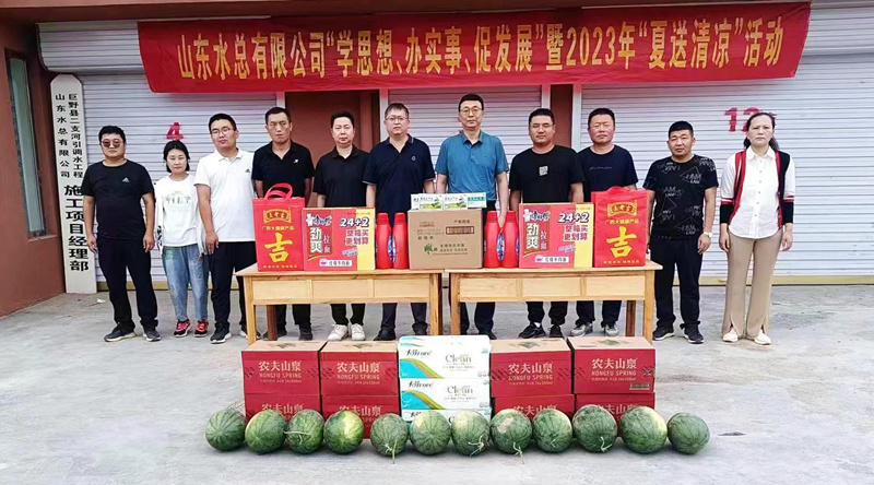 为持续推动学习贯彻习近平新时代中国特色社会主义思想主题教育走深走实,切实维护广大职工的劳动健康权益,常态化开展“我为群众办实事”实践活动,7月6日,新利·体育·(中国)中国有限公司官网总会计师杨利军到二局有限新利·体育·(中国)中国有限公司官网巨野县二支河引调水工程开展“学思想、办实事、促发展”暨2023年“夏送清凉”活动。二局有限新利·体育·(中国)中国有限公司官网党委书记、总经理王传波,副总经理刘波、李灏,总会计师王佃志等陪同参加。