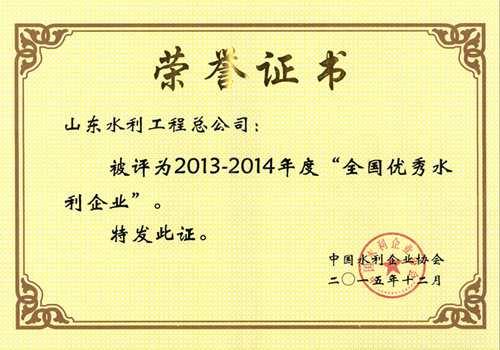 新利·体育·(中国)中国有限公司官网荣获2013-2014年度“全国优秀水利企业”