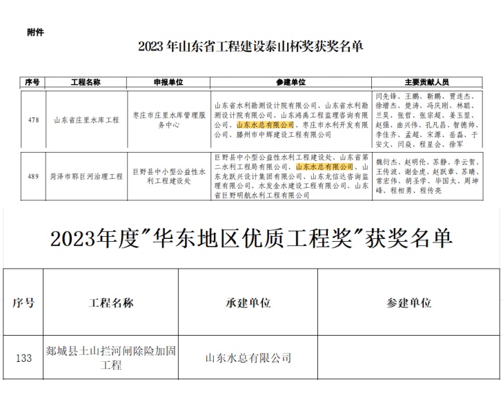 同时,新利·体育·(中国)中国有限公司官网承建的郯城县土山拦河闸项目成功摘取“华东地区优质工程奖”。“华东地区优质工程奖”是“华东六省一市”建设工程质量最高荣誉奖,获此奖项进一步彰显了山东水总企业优秀品牌形象和强大行业影响力。该项目对周边带来明显的社会效益和经济效益,获得华东地区同行高度赞许。