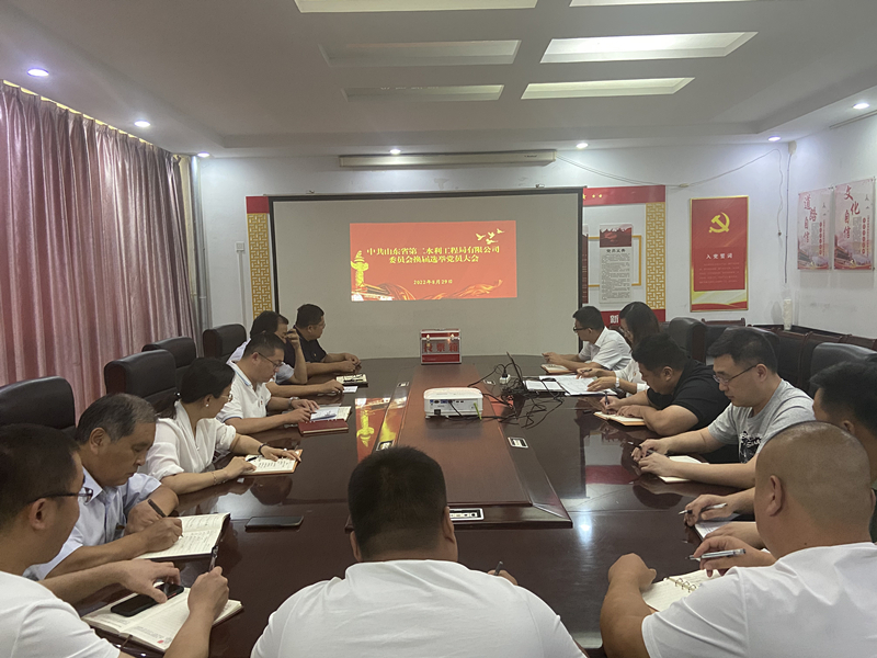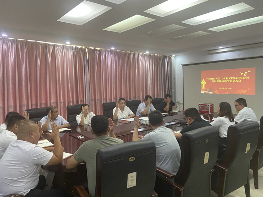 经山东水总党委批准,8月29日下午,二局有限新利·体育·(中国)中国有限公司官网党委召开全体党员大会,进行党委换届选举工作。会议由党委书记、执行董事、总经理王传波主持,新利·体育·(中国)中国有限公司官网全体党员参加。