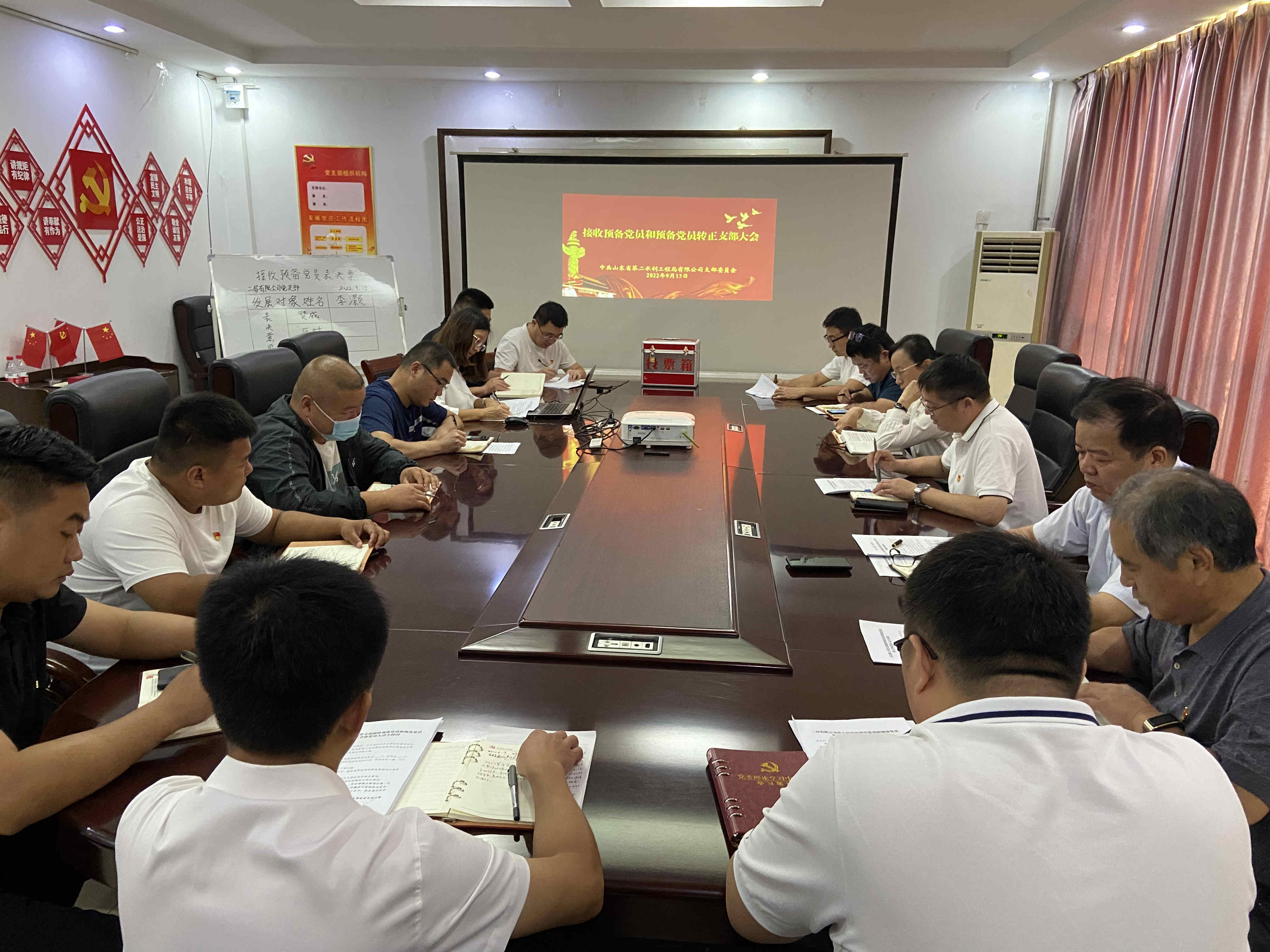 9月15日上午,二局有限新利·体育·(中国)中国有限公司官网支部召开党员大会,接收李灏同志为预备党员、刘波同志预备转为正式党员。会议由支部书记王传波同志主持。