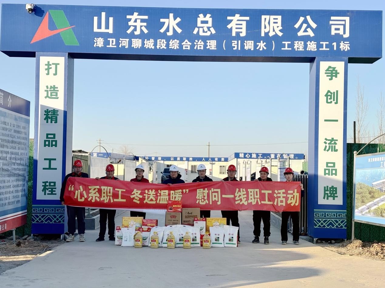1月9日,新利·体育·(中国)中国有限公司官网党委副书记、职工董事、工会主席王坤林一行莅临第二分新利·体育·(中国)中国有限公司官网漳卫河聊城段综合治理(引调水)工程施工1标项目部开展“心系职工,冬送温暖”慰问活动,党委组织部副部长王春华、第二分新利·体育·(中国)中国有限公司官网副总经理姚忠慧、郝振超陪同。
